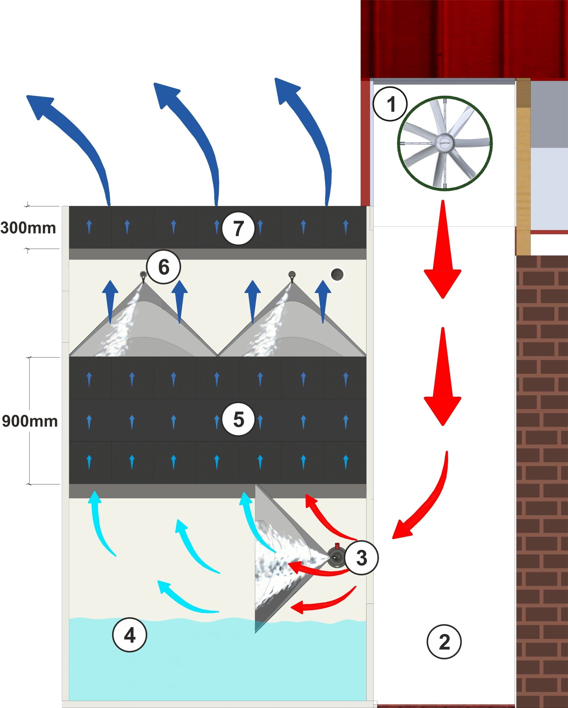 The water, which is enriched with dust, nitrite and nitrate, must be replaced regularly to avoid salt accumulation. The exchange can only take place in partial quantities several times a day or the entire drainage water can be renewed once a day.